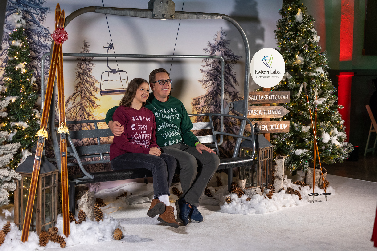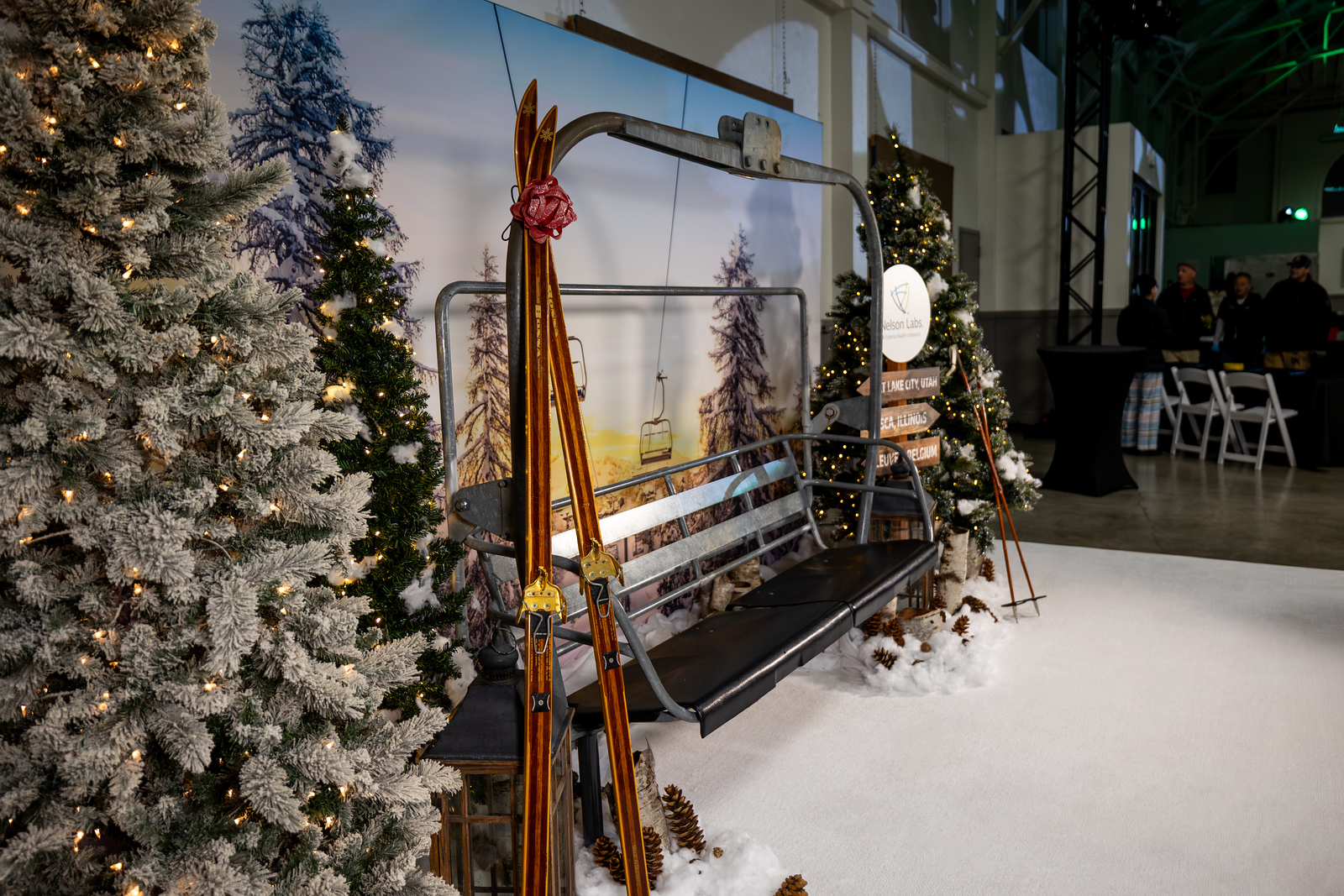 Fat Fish Media transformed Nelson Labs' holiday celebration into a winter festival experience. We redesigned their existing space with festive installations and brought in a custom ski lift photo experience for employee engagement. Our production team handled complete space transformation, interactive elements, and holiday-themed environmental design to create an immersive corporate celebration.